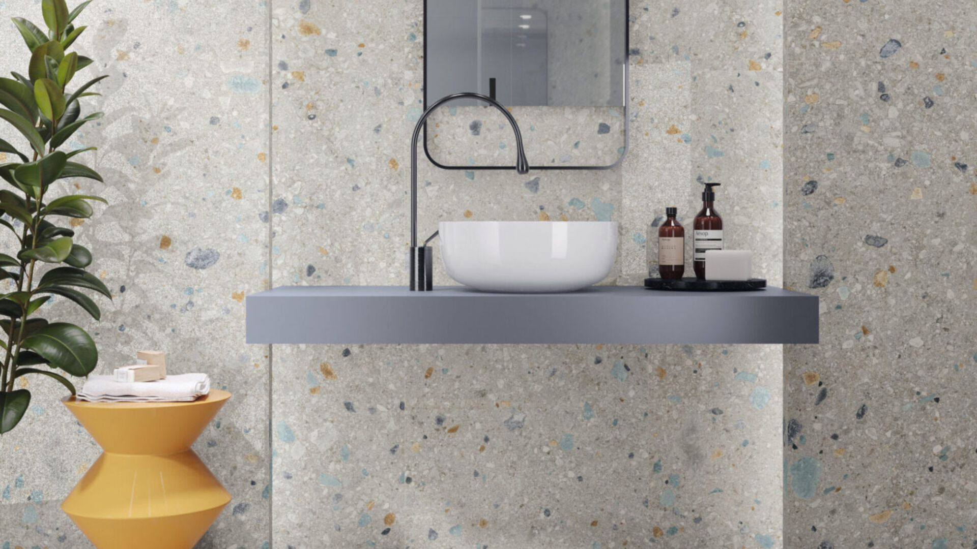 This iconic style has been reinvented for modern living. Terrazzo effect tiles blend chips of marble, quartz or stone-look fragments into a porcelain base, creating a playful surface full of texture and colour.