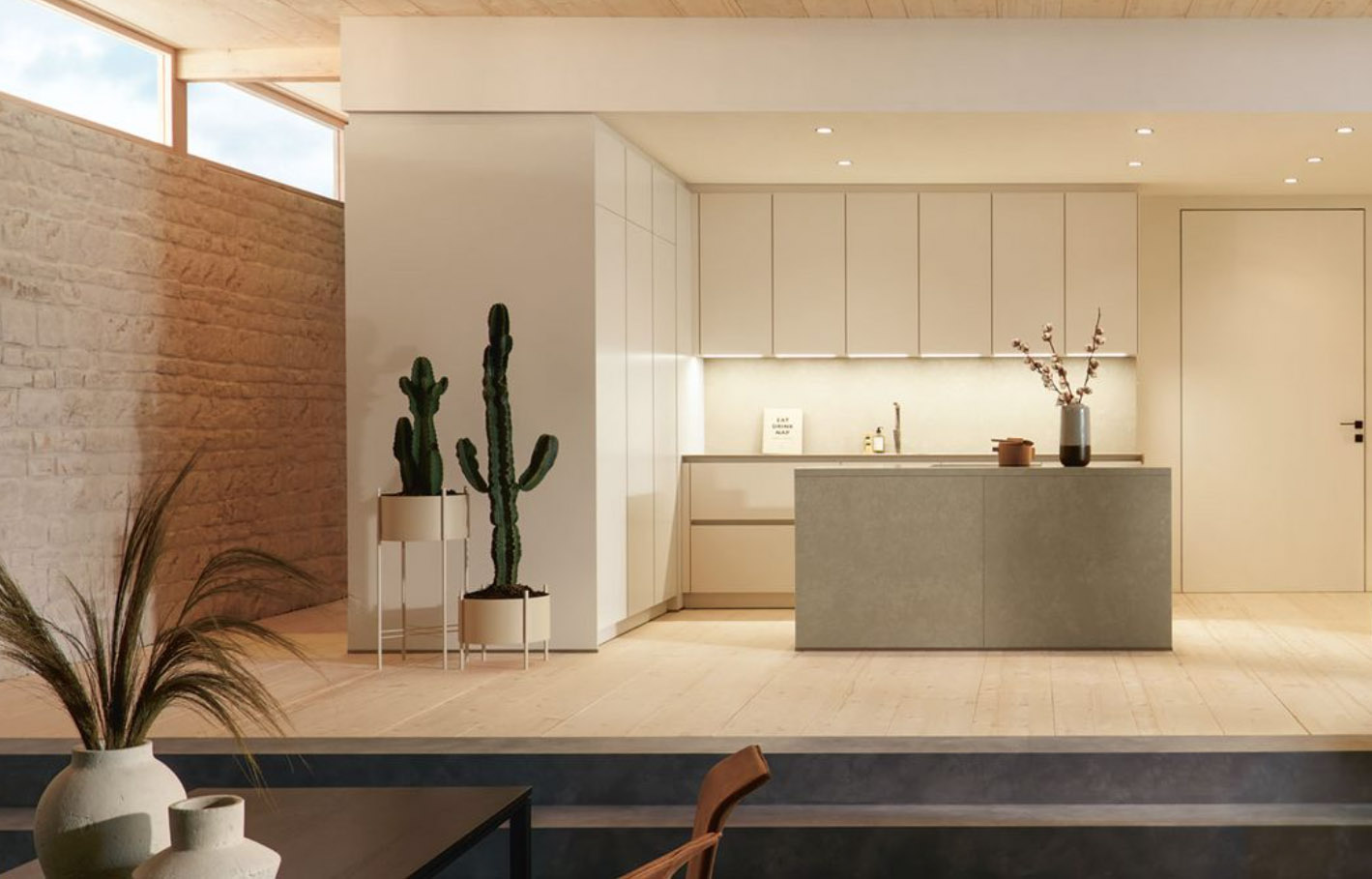 This allows you to design a space that flows seamlessly from kitchen to living areas, creating a cohesive interior from wall to floor.