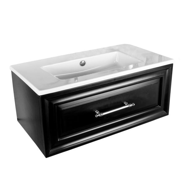 Crafted with a bold, statement design, the Biarritz range features intricate panelled detailing, elegant chrome handles, and a high-quality ceramic basin for a seamless, stylish look. The deep Matt Black finish enhances its timeless appeal, making it perfect for both traditional and modern interiors.