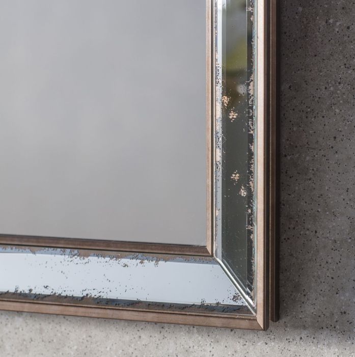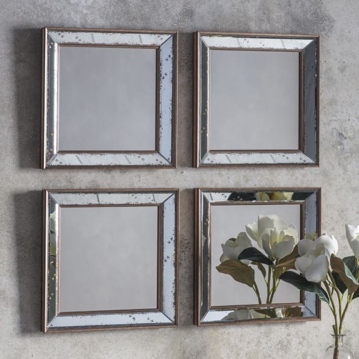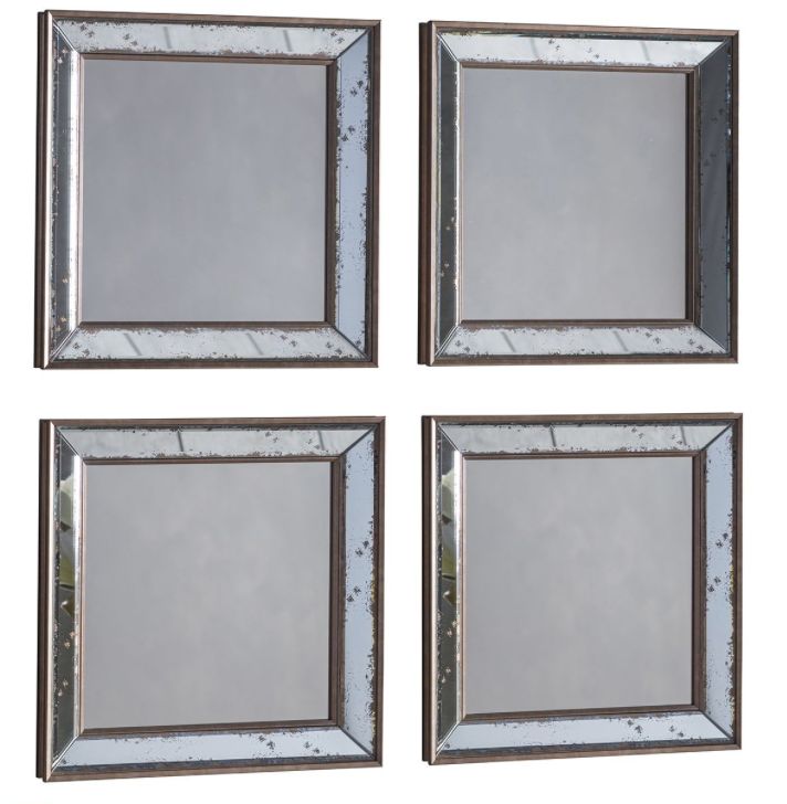 Enhance your space with vintage charm with this set of four distressed antique angled framed mirrors.