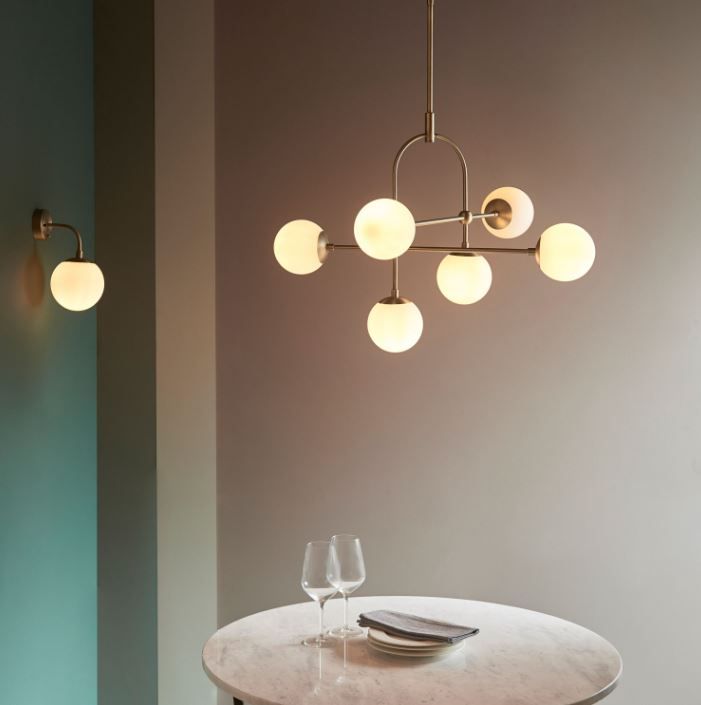 6lt semi flush LED Dimmable IP20 Matt antique brass effect plate & matt white glass Class 1 White Label Multi arm glass Indoor LED lamp MV Semi flush