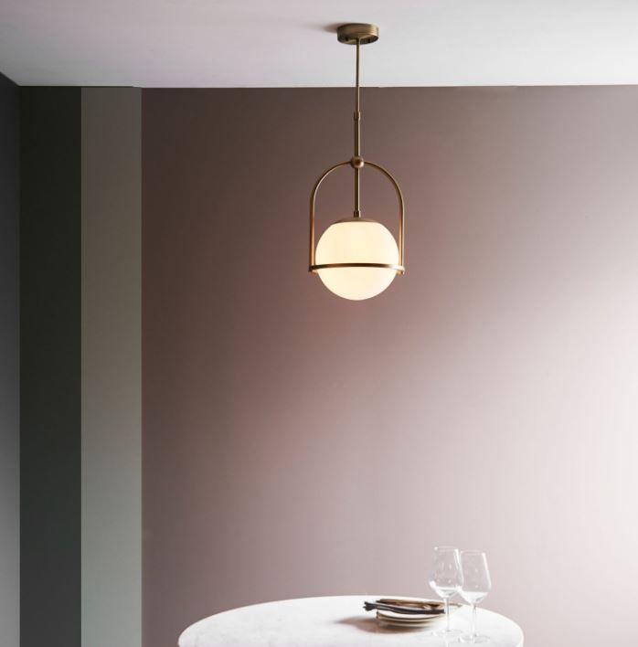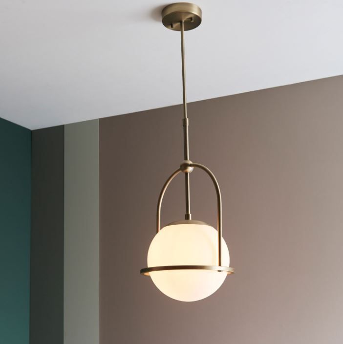 Pendant LED Dimmable IP20 Matt antique brass effect plate & matt white glass Class 1 White Label Single Indoor LED lamp MV Pendant