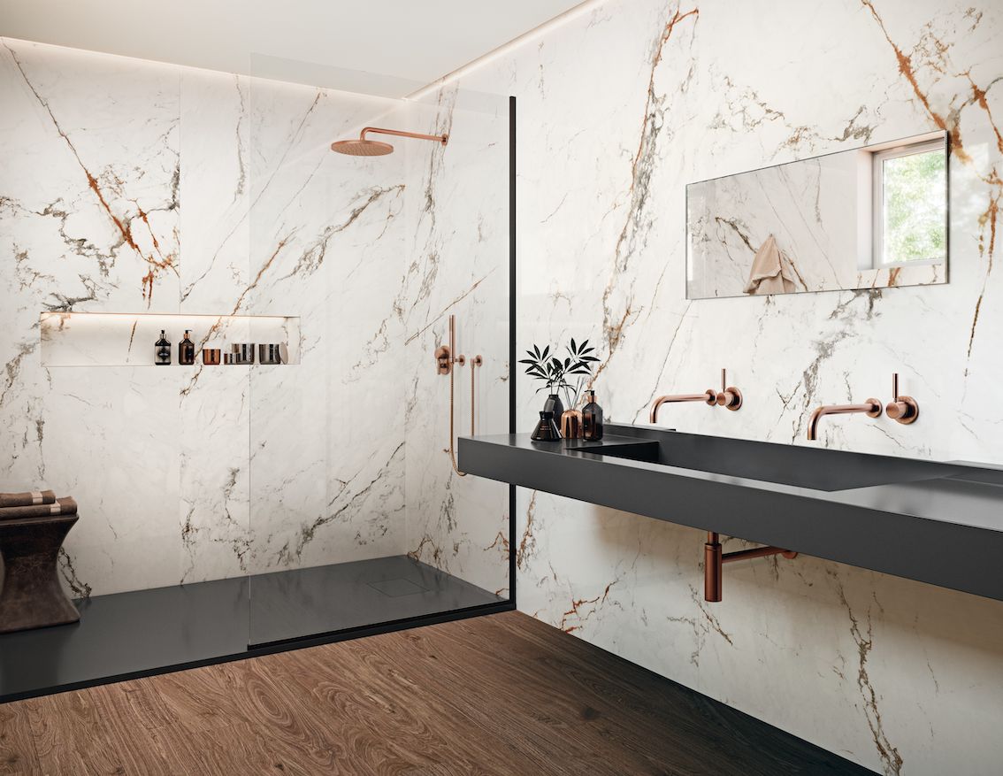 Large format tiles are defined as tiles that are at least 1000mm long. Grespania Coverlam pushes the envelope with tiles up to 1200 x 3600 mm. These tiles offer a sleek, modern look with minimal grout lines, making them ideal for both residential and commercial projects.