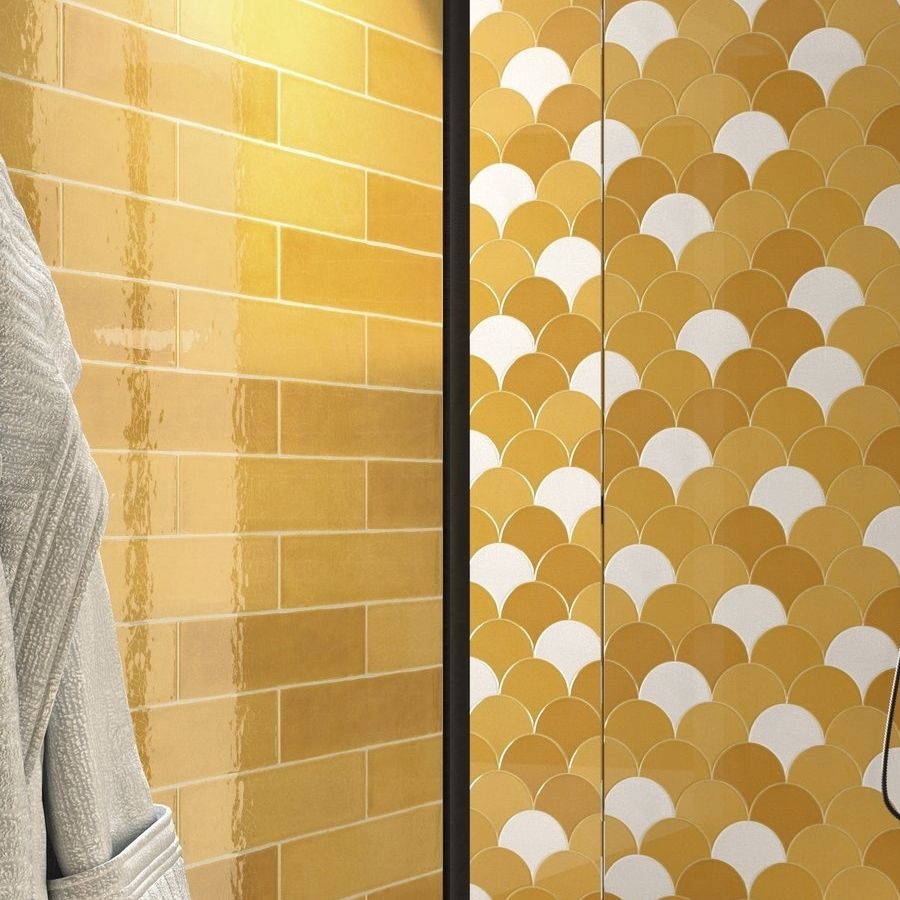 Handmade Crackle Mustard Escamas Wall Tile
