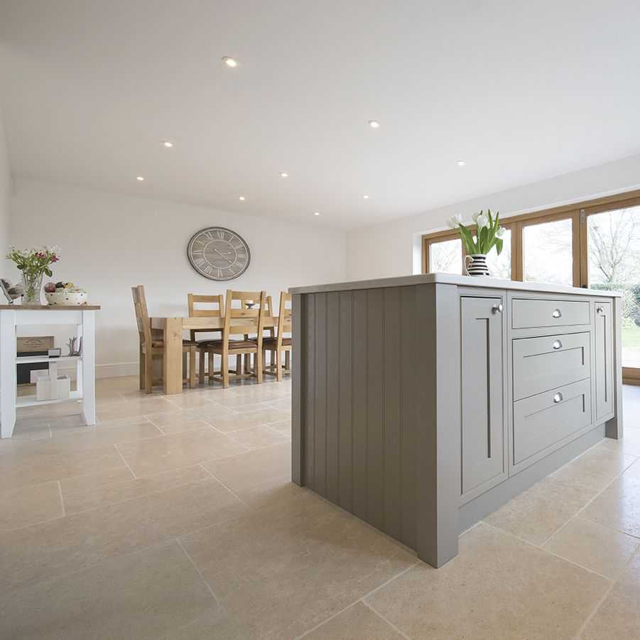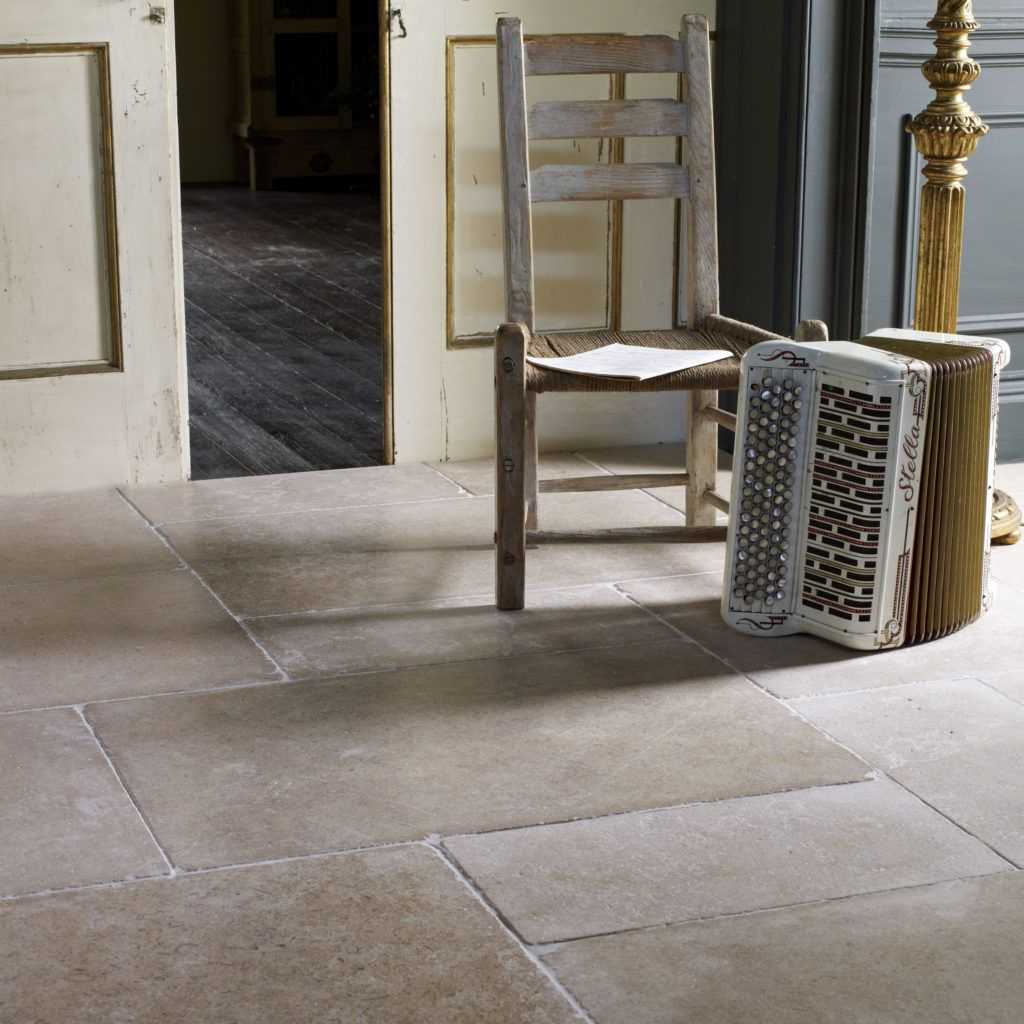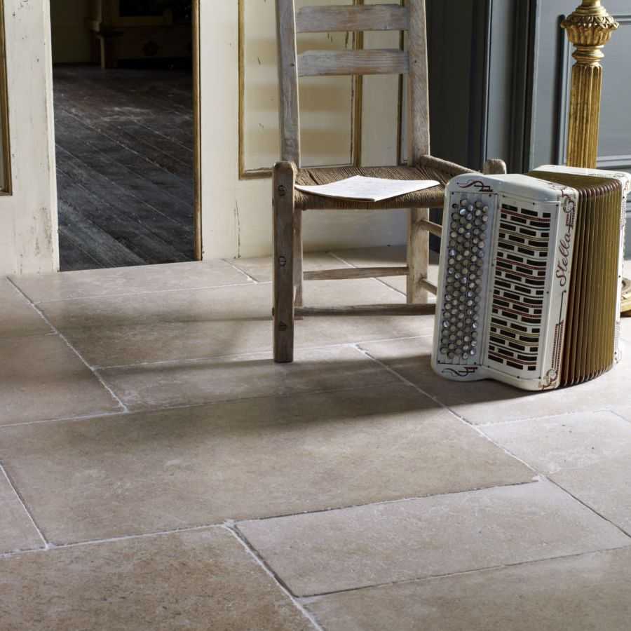 One of our key Heritage Collection products. An antiqued limestone in a predominantly olive colour, with varying beige and copper tones and variation from tile to tile. Hand cut, tumbled edges, and a textured brushed finish, give the tiles their characteristic aged appearance, perfect for traditional settings, and suitable for both indoor and outdoor use.