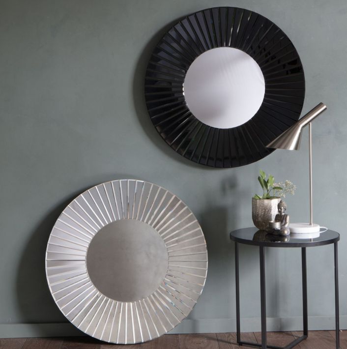 Chic and stylish mirror with art-deco inspired design. Circular mirror with burst style segments.