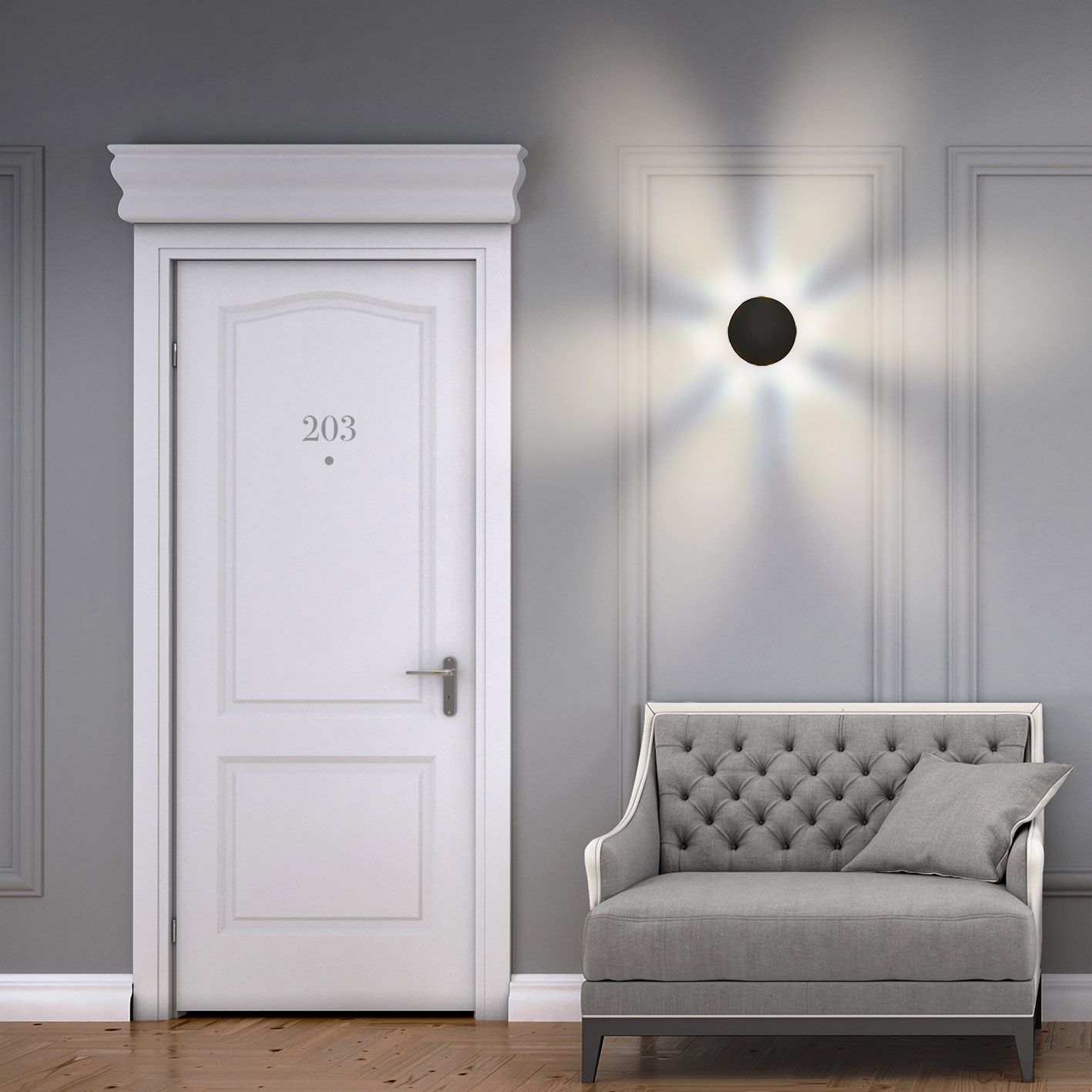 Raggio Di Luce is an Exterior wall light fitting, finished in a matt black cast aluminium. Designed to be inconspicuous until lit when the position of the LED light points casts beautiful patterns on the wall as well as offering useful levels of illumination. Rated IP54.