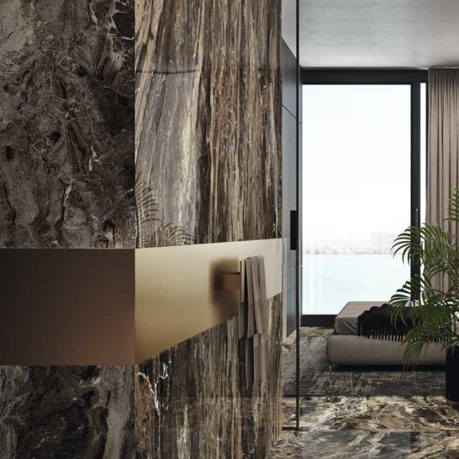 Marble, stone, concrete, metals and coloured tiles; infinite inspiration. Grande by Marazzi tiles now includes new surfaces inspired by the most exquisite marbles, the tactile personality of concrete or the mineral allure of metals, the outcome of the latest materials research and experimentation.