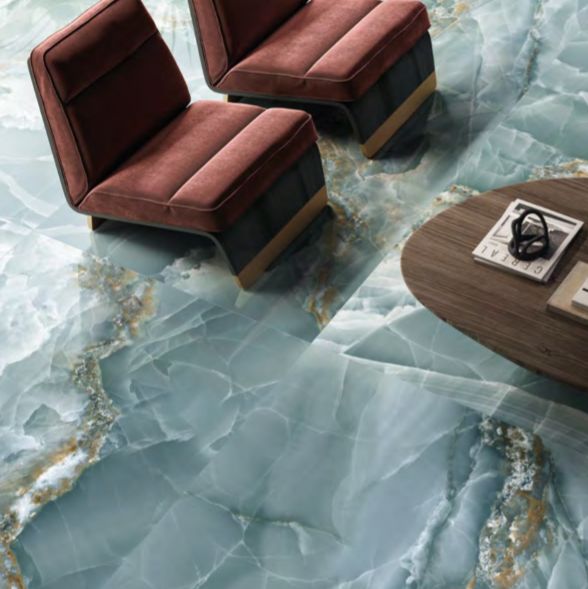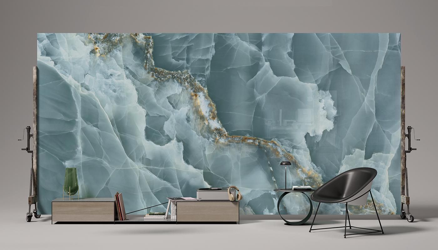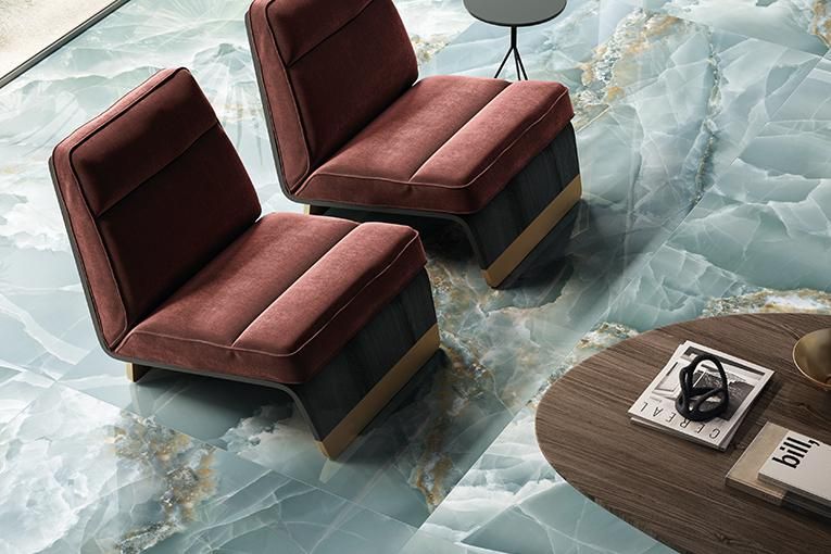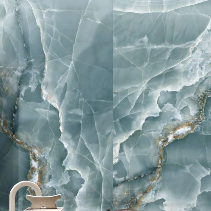 Tele di Marmo La Supra Onyx represents an important step to ongoing research dedicated to the finest and most precious of minerals: the shade variations and transparencies typical of this stone are layered beneath surfaces to bestow a wonderful three-dimensionality and inner gleam. In an extremely refined, intriguing palette of colours – from the enticing Ivory to the elegant Pink, the deep Green and Blue and the dramatic Onyx Black – with its splendid large size of 120 x 278 cm, Tele di Marmo Onyx offers a depth and richness of colour never previously achieved. Moreover, the SilkTech technology provides excellent anti-slip performances while still retaining the ceramic surface’s soft, silky feel.