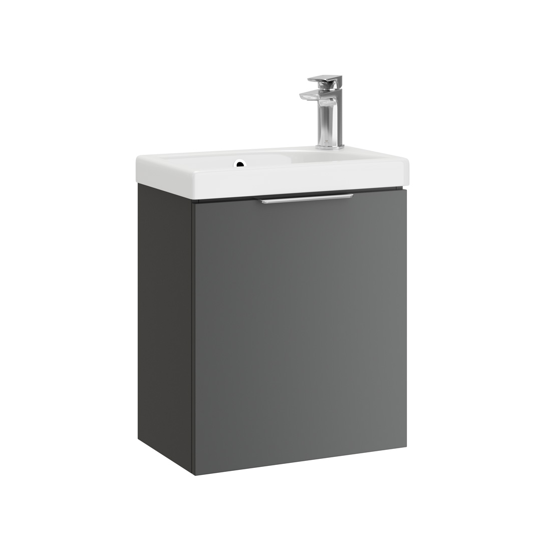 Discover the sleek and versatile My Life Axel Bathroom Range, designed to bring contemporary elegance and practicality to your bathroom. The collection showcases a selection of minimalist units, including the Axel 470mm 1 Door Wall Unit and the Axel 470mm 1 Door Floor Unit, each crafted to offer optimal storage while maintaining a compact footprint. Available in sophisticated finishes like deep blue matt, forest green matt, lead grey matt, and white gloss, the Axel range caters to diverse aesthetic preferences. Each unit is characterised by clean lines and a smooth surface, providing a modern look that complements any bathroom decor. Customisation is at the heart of the Axel collection with optional handles available in chrome, matt black, brushed brass, and gun metal. These choices allow you to personalise the units to match your style and the fixtures in your space, enhancing the overall cohesion and design integrity of your bathroom. Whether installed as a standalone piece or combined for a coordinated look, the Axel bathroom furniture range promises not only style but also functionality, making it an ideal choice for both new installations and renovations seeking a touch of modernity and elegance.- Unit & Basin: H 575 x W 470 x D 300mm