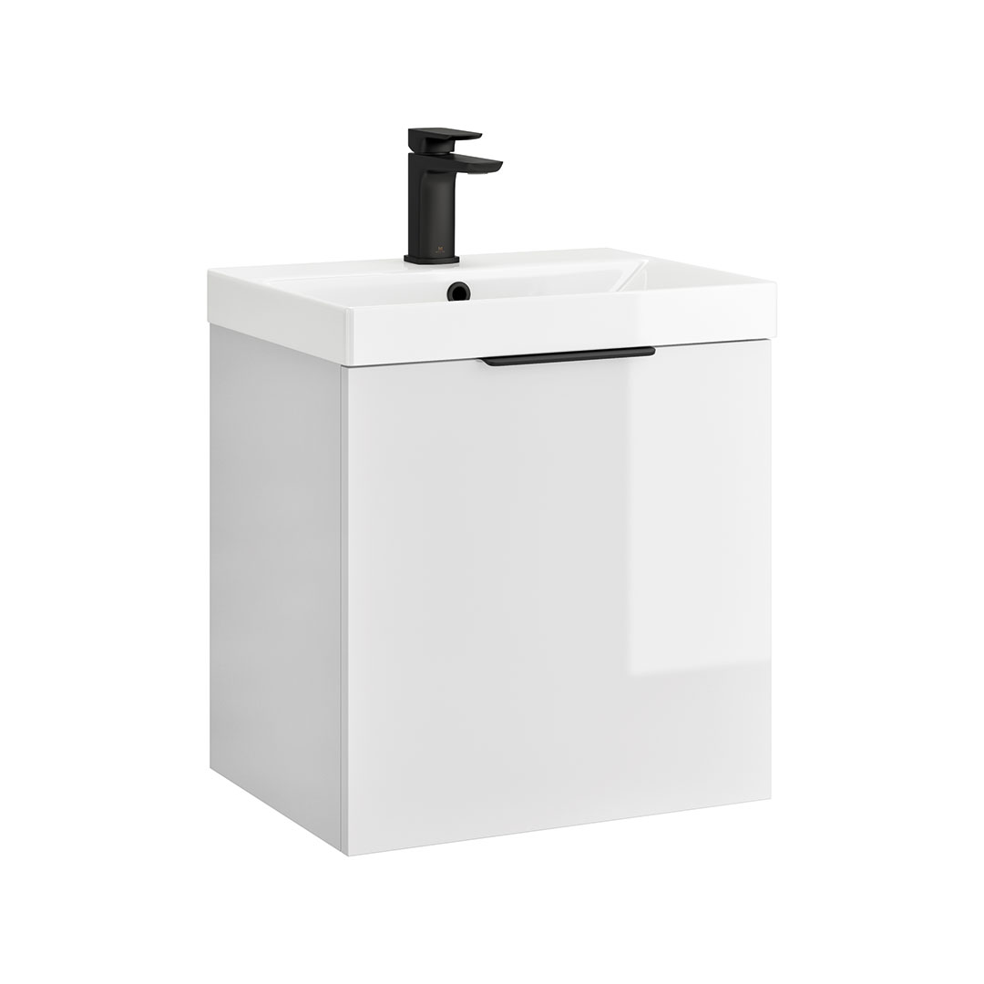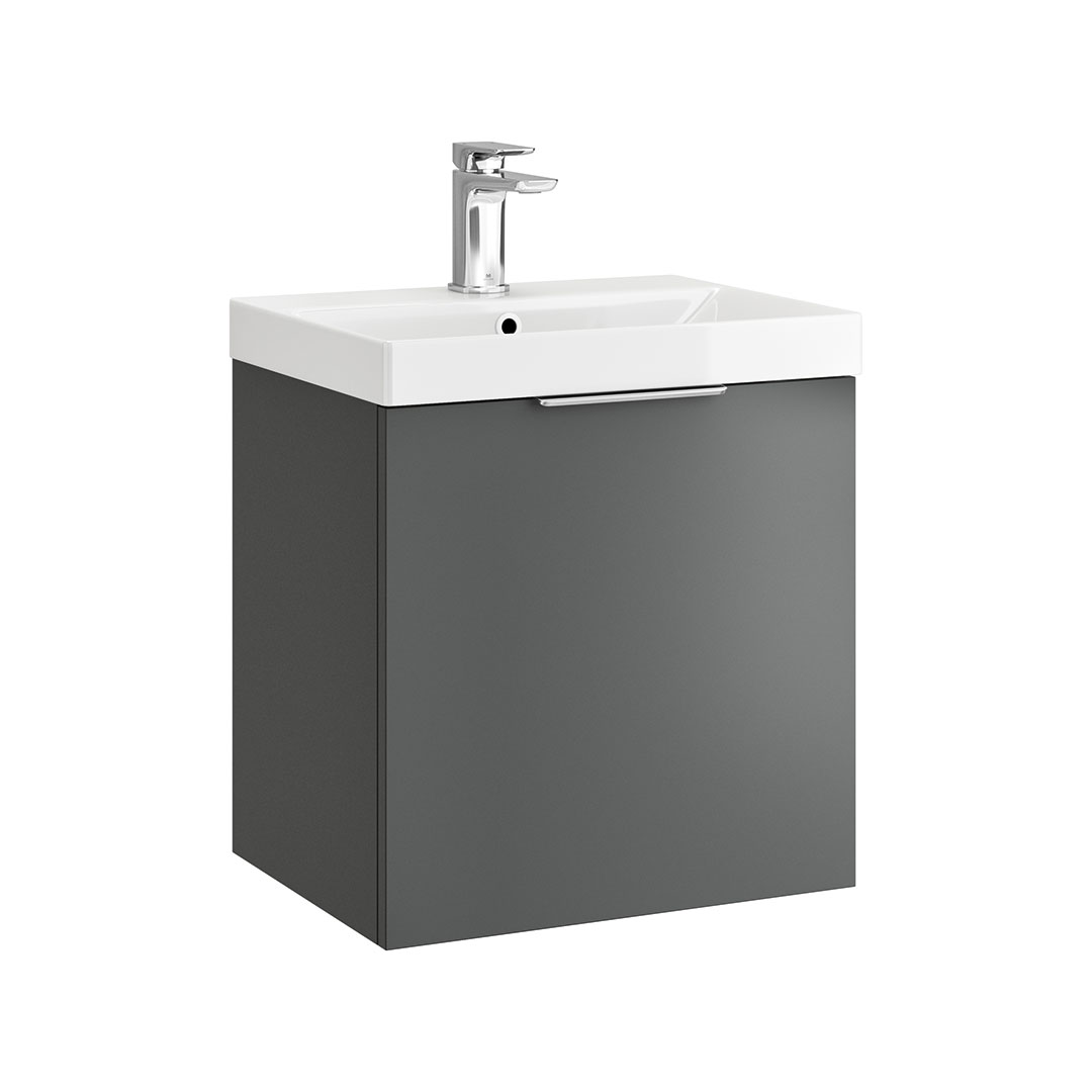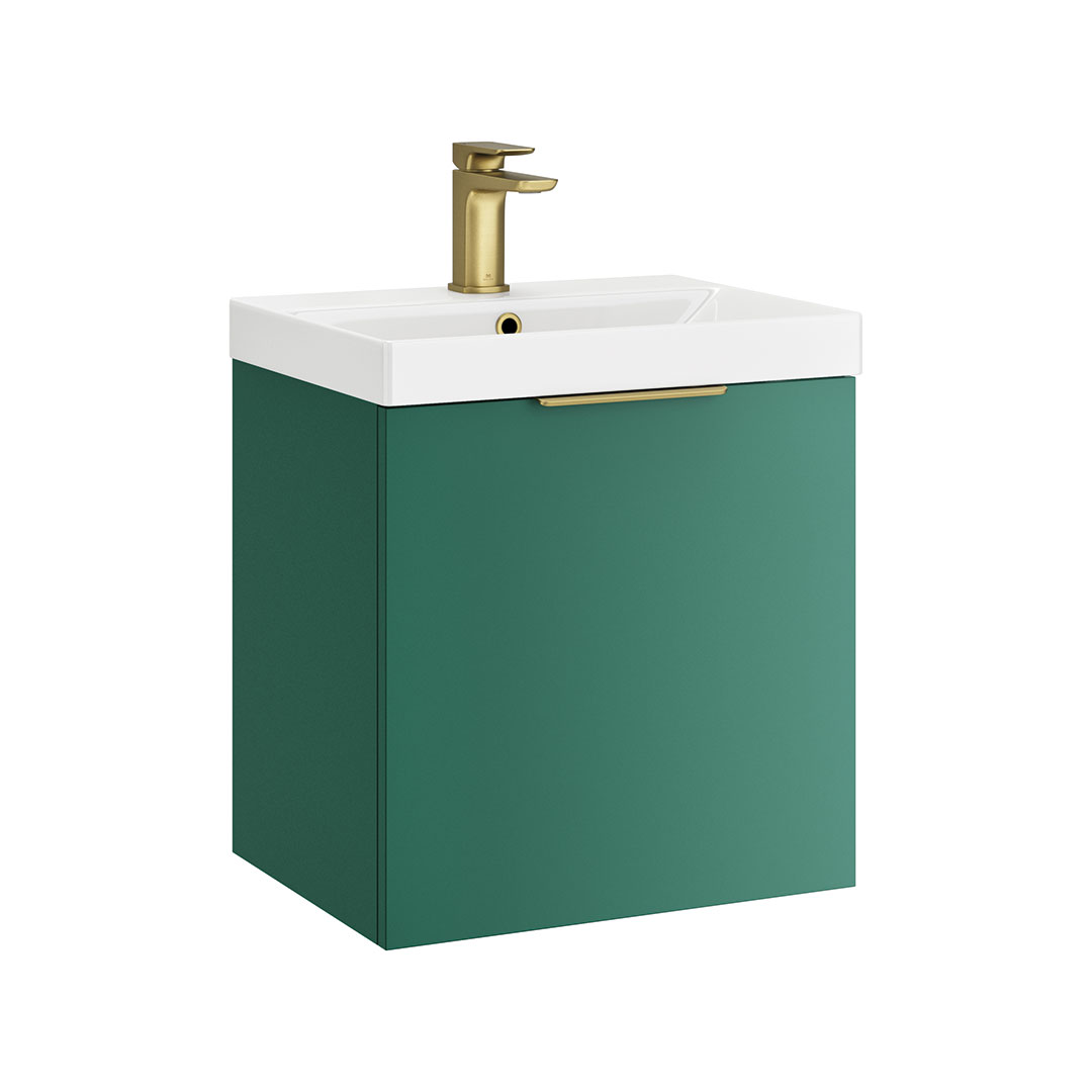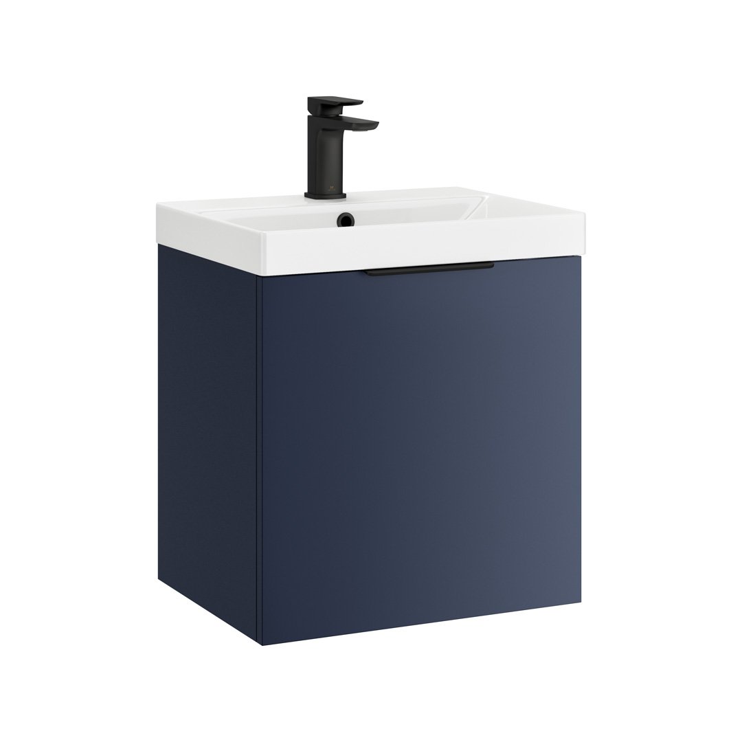 Discover the sleek and versatile My Life Axel Bathroom Range, designed to bring contemporary elegance and practicality to your bathroom. The collection showcases a selection of minimalist units, including the 500mm Wall Unit, 600mm Wall Unit, 950mm Wall Unit, and the Axel 1 Door Wall Mounted Tall Boy, each crafted to offer optimal storage while maintaining a compact footprint. Available in sophisticated finishes like deep blue matt, forest green matt, lead grey matt, and white gloss, the Axel range caters to diverse aesthetic preferences. Each unit is characterised by clean lines and a smooth surface, providing a modern look that complements any bathroom decor. Customisation is at the heart of the Axel collection with optional handles available in chrome, matt black, brushed brass, and gun metal. These choices allow you to personalise the units to match your style and the fixtures in your space, enhancing the overall cohesion and design integrity of your bathroom. Whether installed as a standalone piece or combined for a coordinated look, the Axel bathroom furniture range promises not only style but also functionality, making it an ideal choice for both new installations and renovations seeking a touch of modernity and elegance.- Unit & Basin: H 555 x W 515 x D 395mm