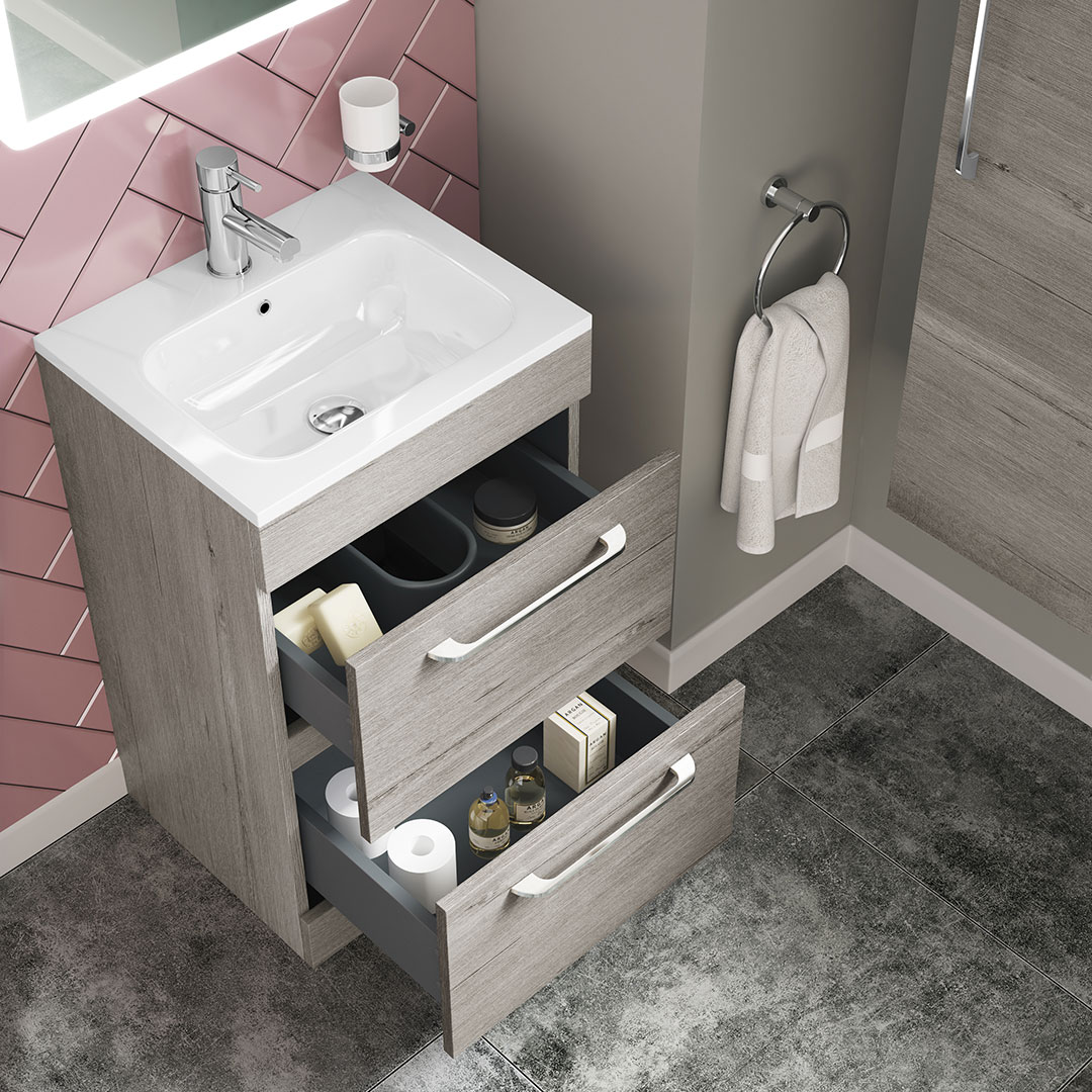 The My Life Ezra Bathroom Furniture Collection embodies the perfect blend of sophistication and innovation, designed to transform your bathroom into a seamless fusion of style and functionality. Each piece in the Ezra collection is crafted with meticulous attention to detail, ensuring it not only meets but exceeds the expectations of modern homeowners. The Ezra range offers an array of beautifully designed vanity units, each presenting a sleek, minimalist aesthetic that is versatile enough to complement any contemporary bathroom decor. Available in a choice of refined finishes, the collection emphasizes clean lines and smooth surfaces, creating a visually appealing and tranquil space. The practicality of the Ezra collection is evident in its robust construction and thoughtful design. Each unit provides ample storage space, allowing for a clutter-free bathroom environment. Soft-close drawers and doors enhance the user experience by ensuring quiet operation and durability, adding an extra layer of convenience and luxury. Ideal for those seeking a modern yet timeless bathroom update, the Ezra collection promises elegance and functionality. Its streamlined design makes it a standout choice for anyone looking to elevate their bathroom with a touch of class and sophistication. Whether you are undertaking a full renovation or a simple update, the Ezra collection offers versatile options to enhance your space with durability and style.- Unit and Basin: H 820 x W 500 x D 420mm