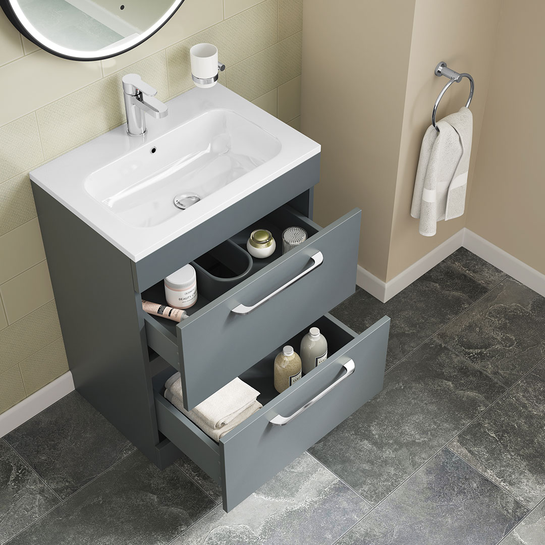 The My Life Ezra Bathroom Furniture Collection embodies the perfect blend of sophistication and innovation, designed to transform your bathroom into a seamless fusion of style and functionality. Each piece in the Ezra collection is crafted with meticulous attention to detail, ensuring it not only meets but exceeds the expectations of modern homeowners. The Ezra range offers an array of beautifully designed vanity units, each presenting a sleek, minimalist aesthetic that is versatile enough to complement any contemporary bathroom decor. Available in a choice of refined finishes, the collection emphasizes clean lines and smooth surfaces, creating a visually appealing and tranquil space. The practicality of the Ezra collection is evident in its robust construction and thoughtful design. Each unit provides ample storage space, allowing for a clutter-free bathroom environment. Soft-close drawers and doors enhance the user experience by ensuring quiet operation and durability, adding an extra layer of convenience and luxury. Ideal for those seeking a modern yet timeless bathroom update, the Ezra collection promises elegance and functionality. Its streamlined design makes it a standout choice for anyone looking to elevate their bathroom with a touch of class and sophistication. Whether you are undertaking a full renovation or a simple update, the Ezra collection offers versatile options to enhance your space with durability and style.- Unit and Basin: H 820 x W 600 x D 420mm