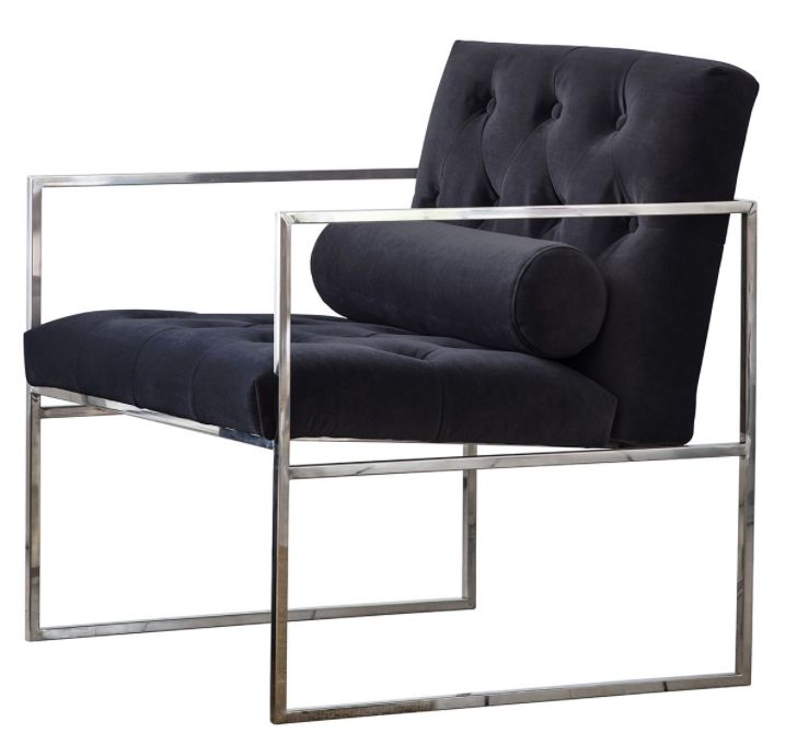With a cast aluminium finished frame, this armchair has buttoned velvet upholstery with a matching bolster cushion