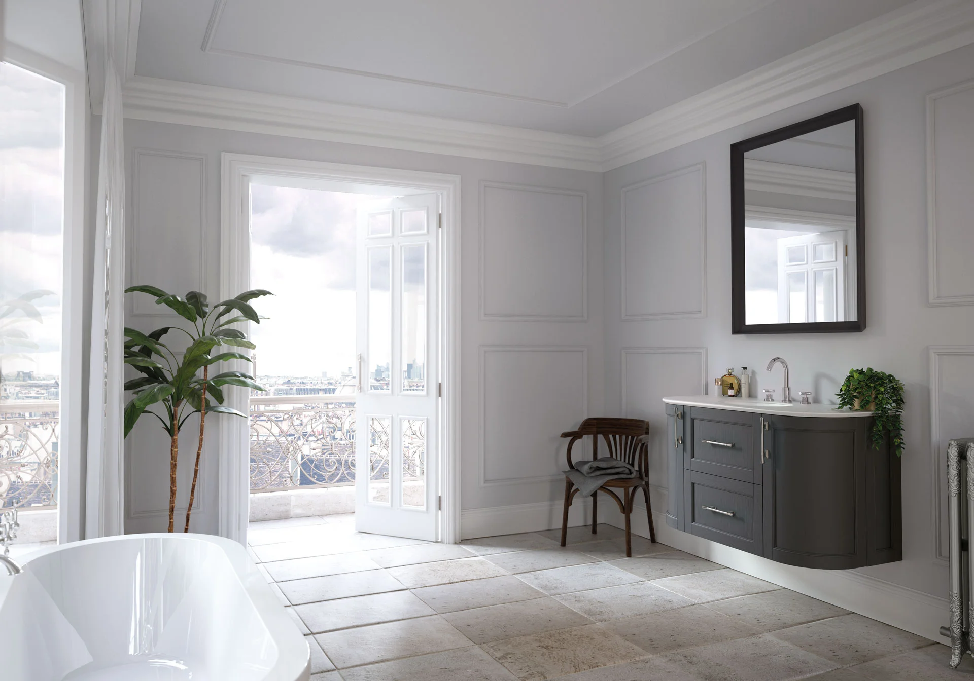 The Utopia Roseberry range has stunning curved unit options, bold new paint finishes, sleek sanitaryware additions, stylish taps and hand-picked handles.