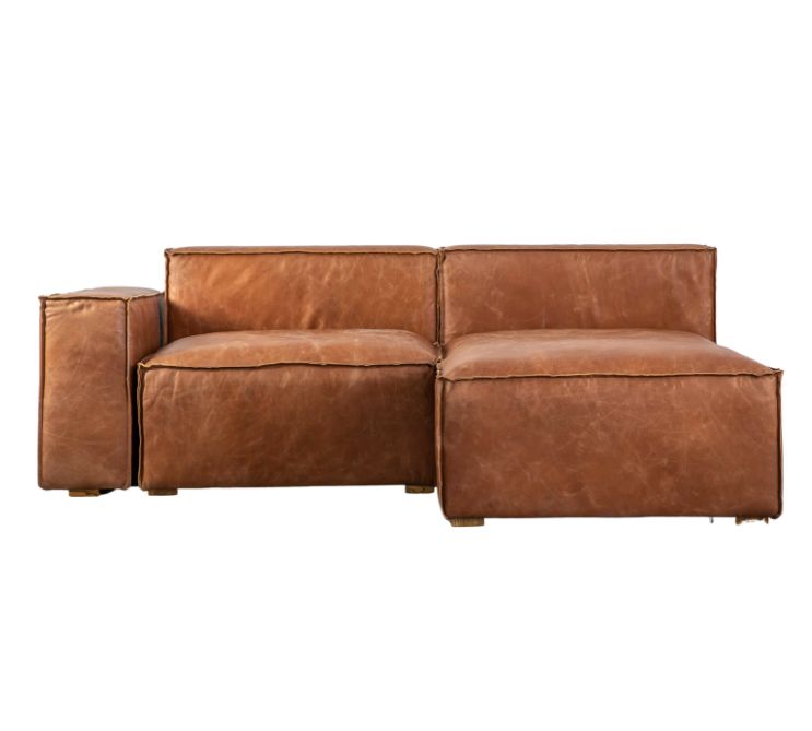 The Vintage Sofa makes an eye-catching feature piece. It is upholstered in top grain full leather hide with external seams to add detail and interest.