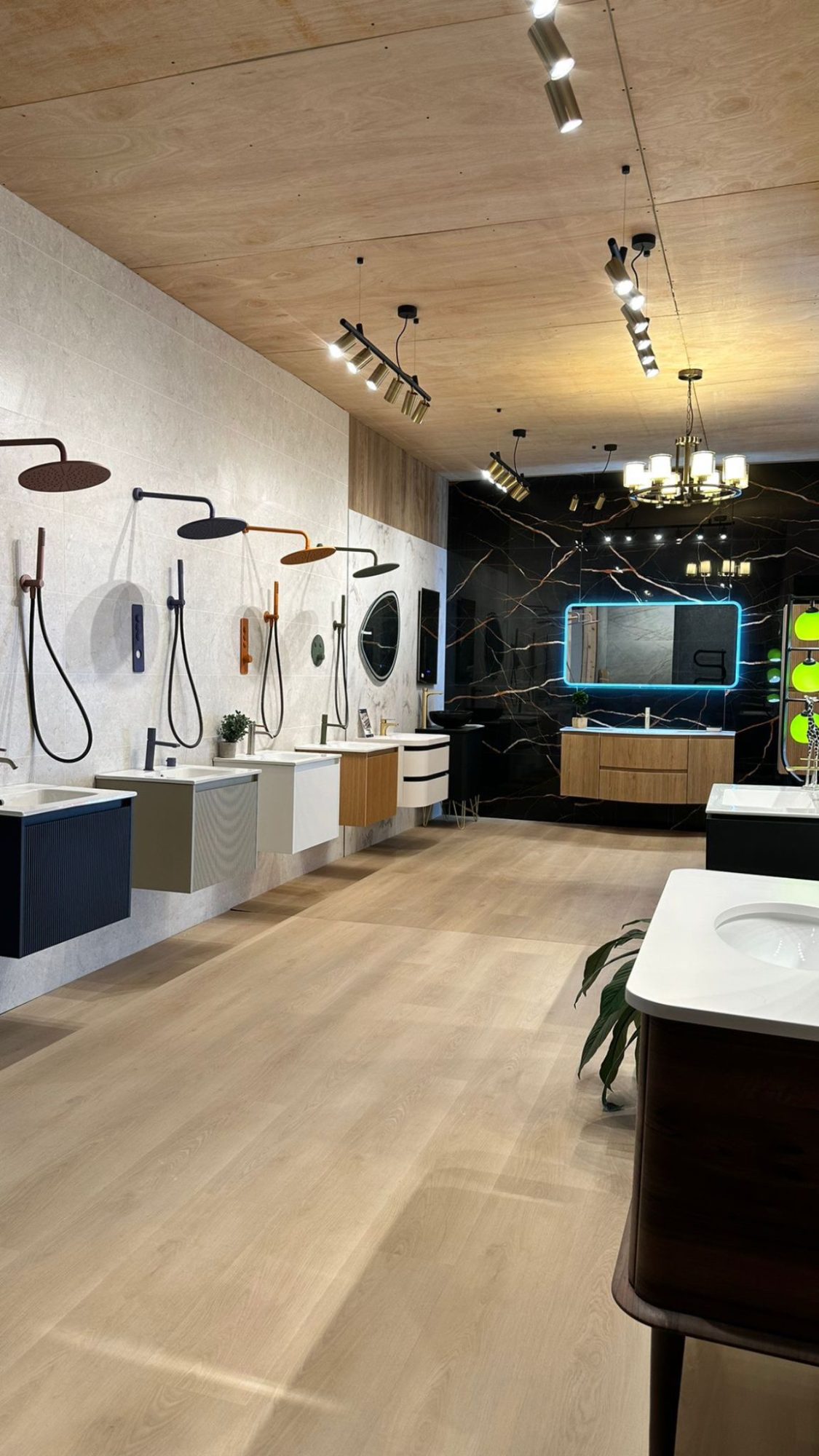 From striking feature tiles and large format porcelain to statement freestanding baths, elegant brassware, layered lighting and warm, practical wood effect flooring, everything is displayed to help you visualise how it works together. Our kitchen displays complete the journey, showcasing how wall to floor design can flow seamlessly throughout your home.